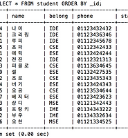 WHERE은 조건을 나타냅니다. 위 예시에서는 belong값이 IDE와 일치하는 것을 찾았습니다.
