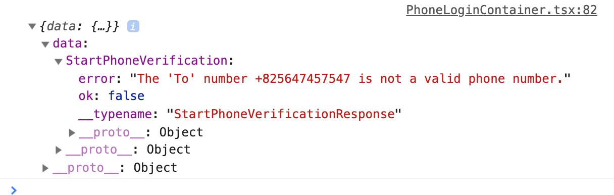 이번에는 StartPhoneVerification mutation을 실행할텐데, 인자로 phoneNumber를 받고, 응답은 ok, error 필드를 가진다.